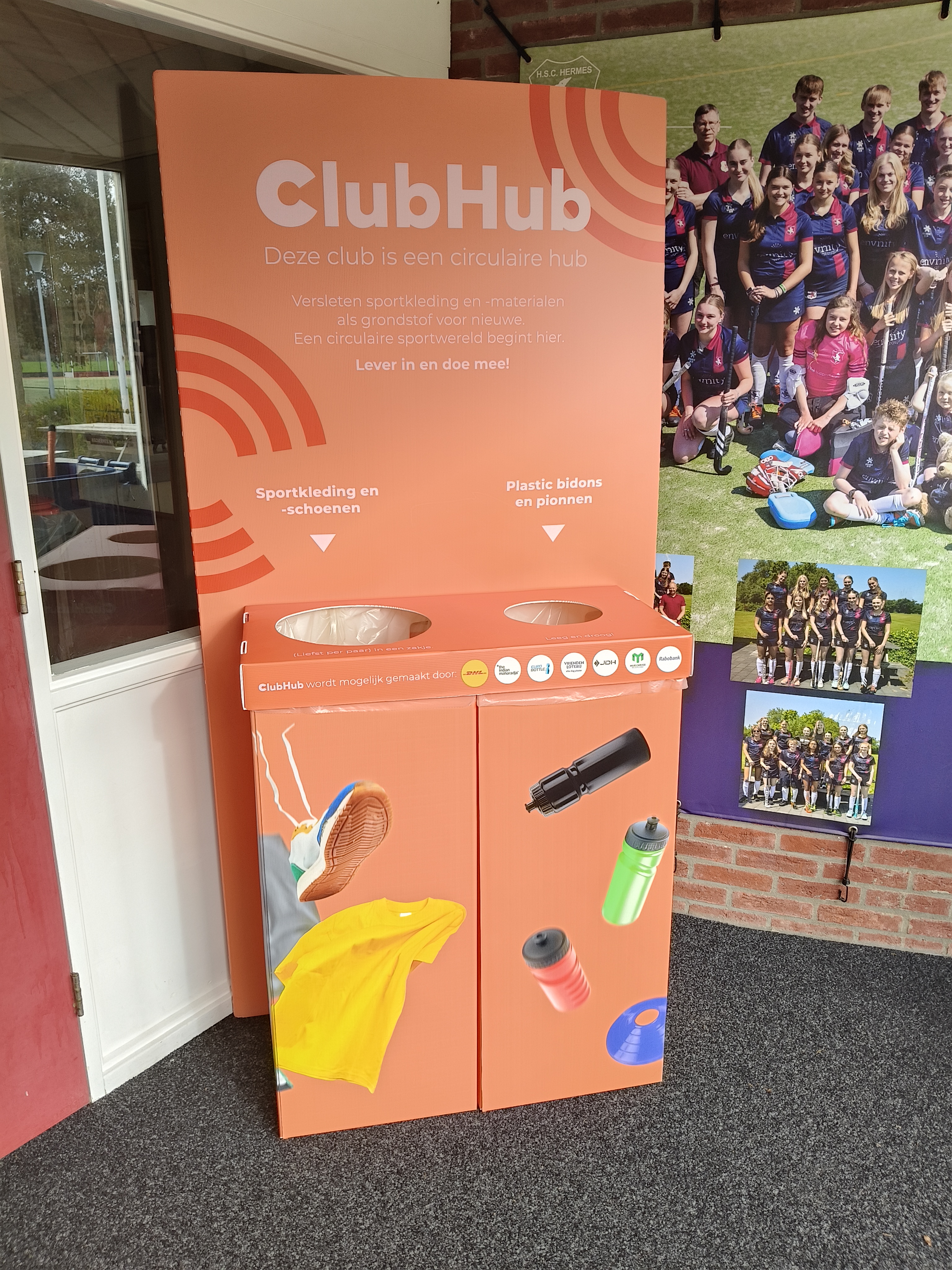 Vanaf nu kan iedereen al zijn "oude" sportkleding /sportschonen, oude bidons, pionnen inleveren bij deze Hub.